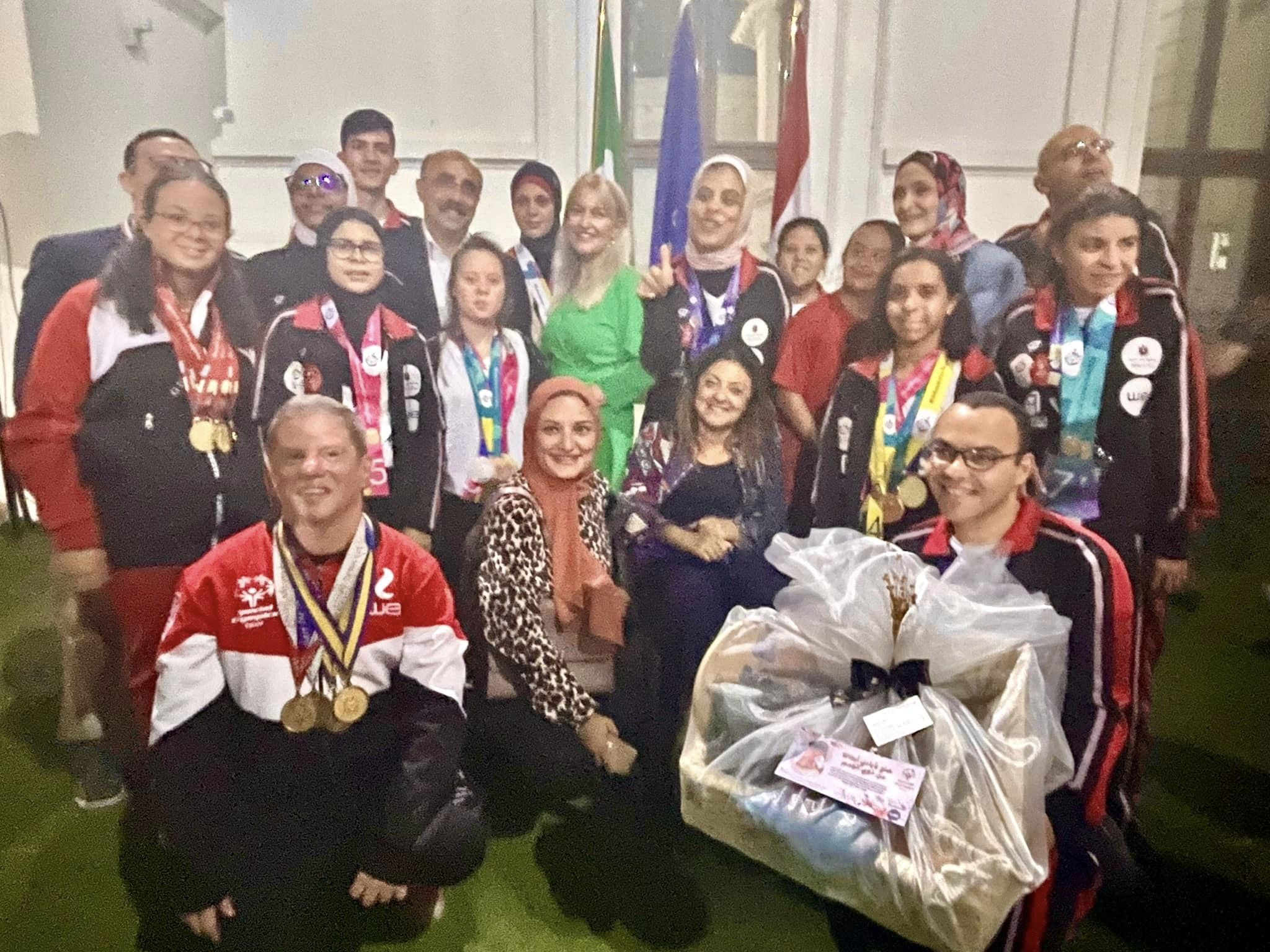 احتفلت مساء أمس السفارة الايرلندية بالقاهرة بأبطال الاولمبياد الخاص المصري بقر السفارة بمنطقة الزمالك بالقاهرة. شهد الاحتفالية نولا أوبراين سفيرة أيرلندا بمصر والدكتور باسم تهامي المدير الوطني بالاولمبياد الخاص المصري وسوشيل كومار سفير نيبال بالقاهرة والدكتورة هبه هجرس عضو مجلس النواب السابق والدكتورة ايمان كريم رئيس المجلس القومي للاعاقة والسفير هشام بدر وعددا من رواد العمل الاهلي في مجالات ذوي الاعاقة وبمشاركة 15 لاعب ولاعبة من الاولمبياد الخاص المصري . عبر الدكتور باسم تهامي المدير الوطني للاولمبياد الخاص المصري عن سعادته بتلك الاحتفالية الرائعة التي لمست قلوب ابطالنا في الاولمبياد الخاص والاهتمام الكبير بهم، مشيرا الي ان أيرلندا قد استضافت دورة الالعاب العالمية الصيفية للاولمبياد الخاص في عام 2003 والتي تركت أثر طيب لدي المشاركين في تلك الالعاب والتي لازال خالدا في نفوسهم ويتذكرونها دوما بكل خير . فيما قالت السفيرة نولا أوبراين سفير أيرلندا بالقاهرة أنها ممتنة دائما بكل قصص نجاح اللاعبين من ذوي الهمم معبرة عن سعادتها بتواجدهم بالسفارة الأيرلندية وانهم دائما ملهمين في كافة مناحي الحياة . وقد اشتملت الاحتفالية علي كلمات الضيوف وعرض قصص نجاح لابطال من ذوي الهمم واتاحة الفرصة للتعارف بين جميع المشاركين في تلك الاحتفالية والتقاط الصور التذكارية . وقد اهدي لاعبو الاولمبياد الخاص المصري هدية للسفيرة نولا أوبراين سفيرة أيرلندا عبارة عن منتجات يدوية وحرفية من صنع ايديهم من مشروع التدريب المهني والحرفي برعاية وي ، وقد أعجبت السفيرة بالمنتجات وأثنت علي هذا المشروع التي تتبناه مؤسسة يونيفاي ايجيبت للدمج المجتميع وعبرت عن سعادتها .