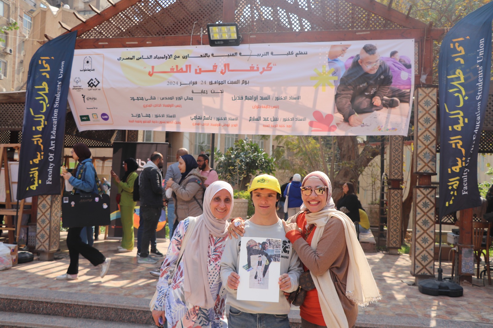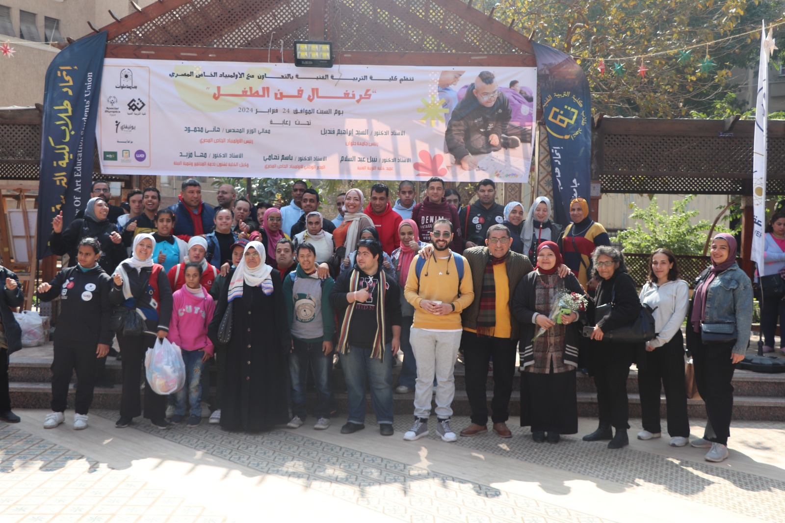 شارك ابطال الاولمبياد الخاص المصري في فعاليات كرنفال فن الطفل الذي اقامته كلية التربية الفنية بجامعة حلوان بالتعاون مع الاولمبياد الخاص المصري . حضر فعاليات اليوم من الاولمبياد الخاص المصري كريمة الديب مسئول برنامج التدريب المهني والحرفي للاعبين وحضر من كلية التربية الفنية الاستاذ الدكتور نبيل عبد السلام عميد الكلية والاستاذة الدكتورة مها مزيد وكيل الكلية لشئون خدمة المجتمع وتنمية البيئة و الدكتورة مرام ابراهيم دكتور بقسم التصوير والدكتورة حنان الشهاوى دكتور قسم الخزف بالاضافة الي مشاركة 40 لاعب ولاعبة من الاولمبياد الخاص المصري . وقد اشتملت اليوم علي عددا من الورش التدريبية في تخصصات مختلفة والتي شهدت مشاركة متميزة ورائعة بها والتي ضمت ورشة الخزف بالطين الاسواني وورشه تصنيع عرائس القفاز وورشه كولاجو مجسم بالورق وورشه نسيج بالورق وشرائط الستان وورشه طباعه على القماش وورشه قص ولزق بالورق وورشه رسم بالالوان المائيه على التوال كما تخلل الكرنفال فقرات غنائيه ورياضيه . واختتم الكرنفال بتقديم هدايا لكل المشاركين مقدمة من الشركات الراعية من شركه سيراميكا ارت وشركه سكيب للدهانات.