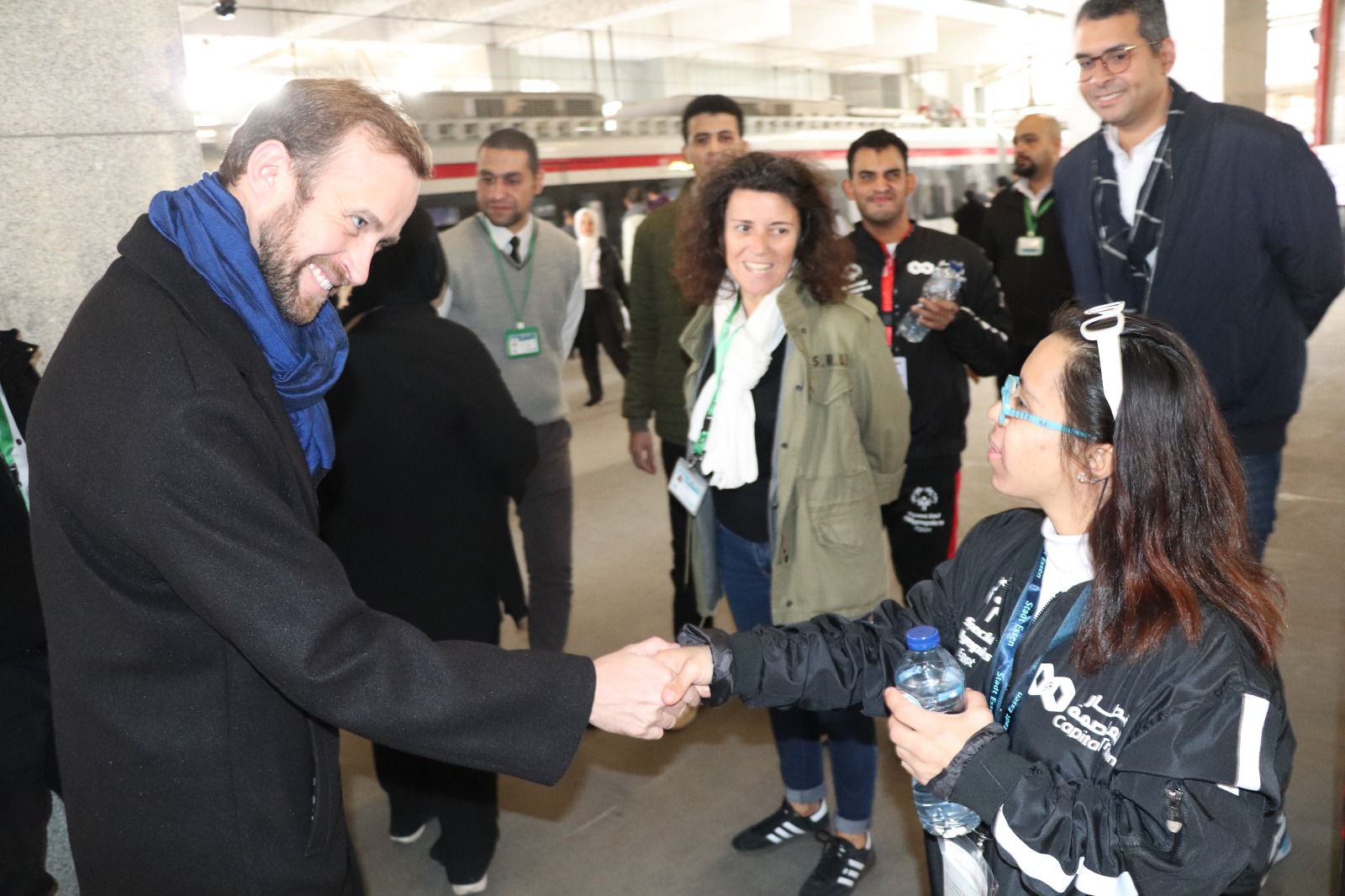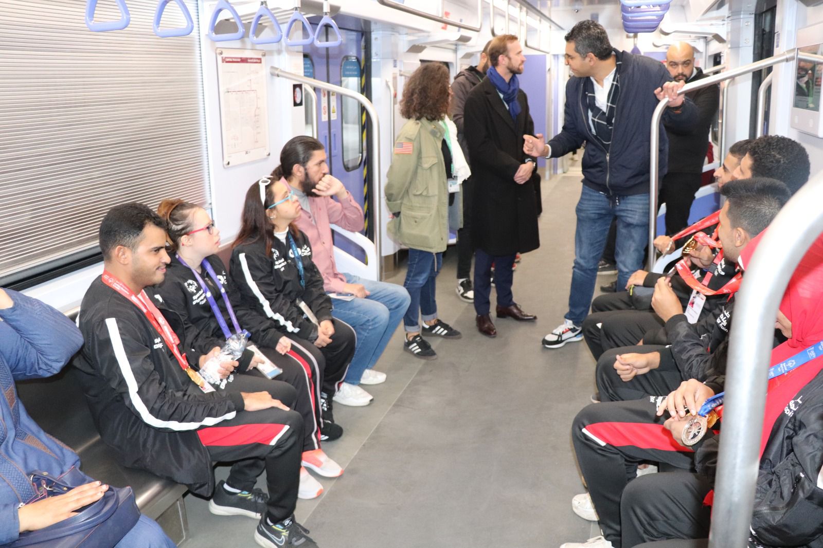 شارك ابطال الأولمبياد الخاص المصري في احتفالية الشركة المشغلة لقطار العاصمة والخط الأخضر الثالث بمناسبة اليوم العالمي لذوي الاعاقة في 3 ديسمبر تحت إشراف الهيئة القومية للأنفاق ووزارة النقل. أكد الاستاذ الدكتور باسم تهامي المدير الوطني للاولمبياد الخاص المصري أن هذه المشاركة تعكس الوعي المجتمعي المتزايد حول حقوق ذوي الإعاقة وأهمية دمجهم في الأنشطة والفعاليات التي تعزز من مكانتهم في المجتمع. وأكد تهامي أن الاحتفالية تسلط الضوء على أهمية توفير بيئة شاملة ومتاحة لجميع الأفراد، مشيرين إلى أن مشاركة أبطال الأولمبياد الخاص في مثل هذه الفعاليات تمثل رسالة إيجابية عن قدرة الأشخاص ذوي الإعاقة على الإبداع والتميز في مختلف المجالات. واعتبروا أن الدعم المستمر لهذه الفئة من المجتمع يعكس التزام الدولة والشركات الخاصة بتعزيز حقوق ذوي الإعاقة وتحقيق مشاركتهم الفعالة في كافة جوانب الحياة. وأضاف أن هذه الفعالية تعد جزءاً من جهود الدولة والمجتمع المدني لتحقيق مزيد من الاندماج المجتمعي للأشخاص ذوي الإعاقة، مع تعزيز الخدمات التي تتيح لهم الوصول إلى مختلف وسائل النقل العامة والمرافق الأساسية. وقد اشتملت الفاعليه علي تقسيم اللاعبين إلى مجموعتين، حيث تم توجيههم إلى محطتي عدلي منصور والمستقبل. هناك، قام اللاعبون بزيارة غرف التحكم، غرف بيع التذاكر، غرف خدمة المواطنين، وغرفة ناظر المحطة، حيث تم شرح مهام العمل في كل منها. بعد ذلك، قام اللاعبون بتأدية تلك المهام بأنفسهم، وتفاعلوا بشكل مباشر مع الجمهور، ما لاقى ترحيباً كبيراً من الحضور الذين أعربوا عن إعجابهم بقدرة اللاعبين على أداء المهام بشكل طبيعي. وتضمنت جولة تفقدية في محطة عدلي منصور، حيث تم استقلال القطار الكهربائي الخفيف متوجهاً إلى محطات العبور والمستقبل، مع شرح مفصل حول خط سير القطار حتى محطة العاصمة الإدارية. بعد ذلك، عاد المشاركون إلى محطة عدلي منصور، حيث تم التقاط صور تذكارية مع المسؤولين من شركة القطار الكهربائي الخفيف، الذين حضروا من فرنسا.